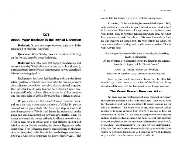 obstruction (atkan) which inevitably blocks spiritual progress.