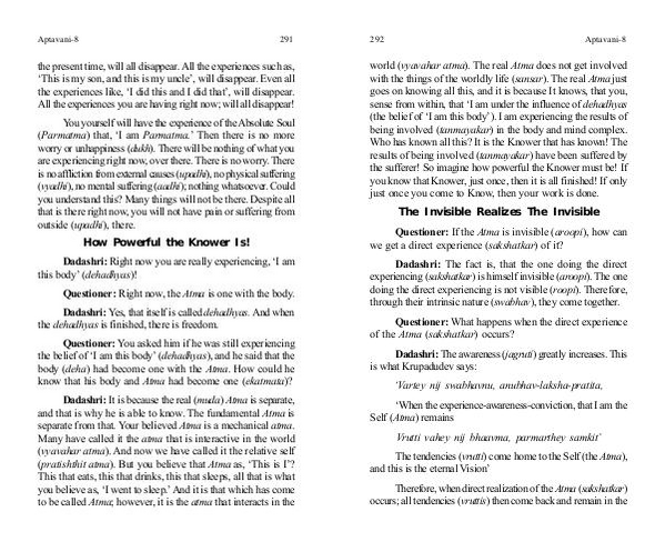 experiencing (sakshatkar) is himself invisible (aroopi). The one