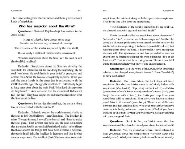 Questioner: So it is the pratishthit atma that has suspicion about the shuddha atma( pure atma; the main Soul)?