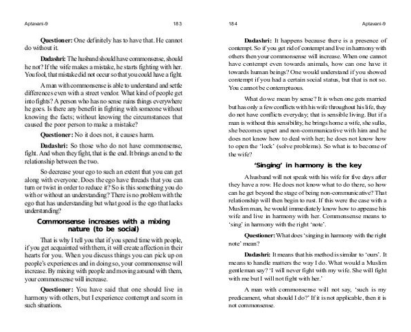 wife and live in harmony with her. Commonsense means to