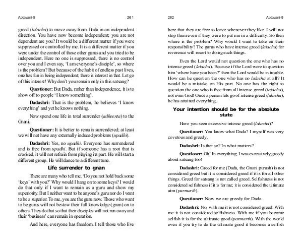 Dadashri: Greed for me (Dada, the Gnani purush) is not