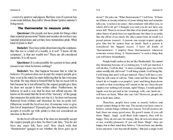 down?’ He asks me‘ What thermometer?’ I tell him,‘ If there are fifteen or twenty relatives of yours sitting here and someone tells you,‘ you have no sense’, that comment will affect you, so where did it all go? I thought you said you do not have any maan left! There is no maan like that of an insult( upmaan). All other forms of pride have no significance but there is no pride like the effect of an insult. He who cannot bear an insult is a proud person( maani). A person can accept respect people give him but he cannot bear an insult. Such a person is considered the biggest maani. I have all kinds of‘ thermometers’. I employ these thermometers whenever someone comes along. A‘ thermometer’ is such a thing that you will know immediately.