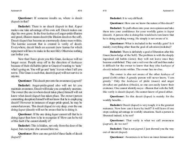 Dadashri: There is no deceit (kapat) in that. Kapat