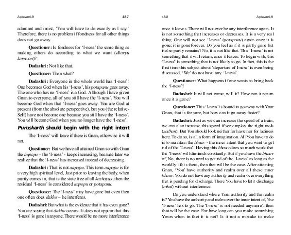 Questioner: But we have all attained Gnan so with Gnan the aapopu – the‘ I-ness’- keeps increasing, because later we realize that the‘ I-ness’ has increased instead of decreasing.