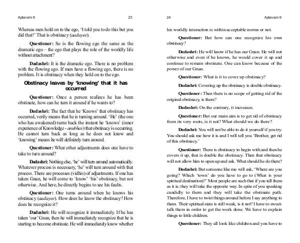 Dadashri: Covering up the obstinacy is double obstinacy.