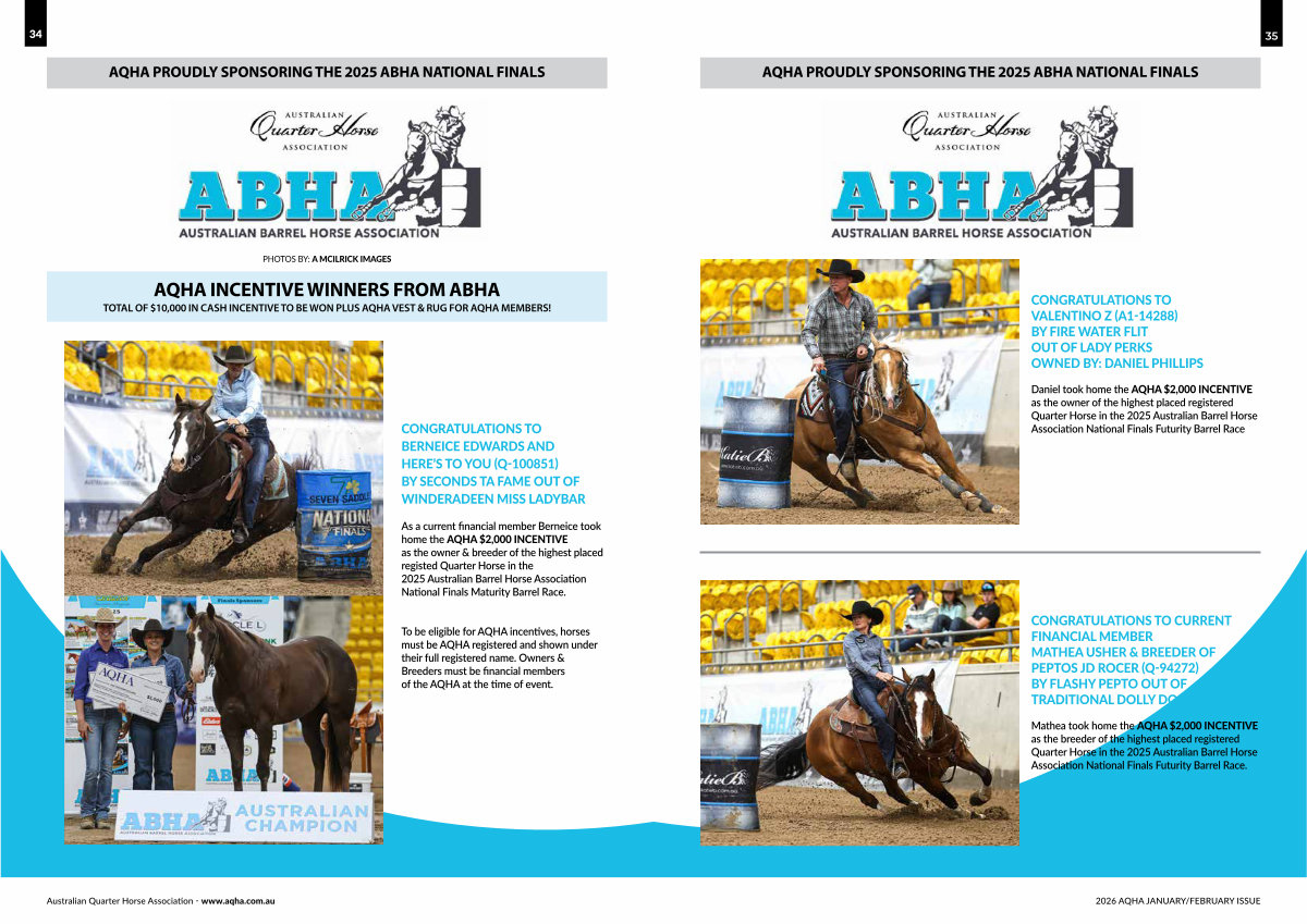 Daniel took home the AQHA $ 2,000 INCENTIVE as the owner of the highest placed registered Quarter Horse in the 2025 Australian Barrel Horse Association National Finals Futurity Barrel Race