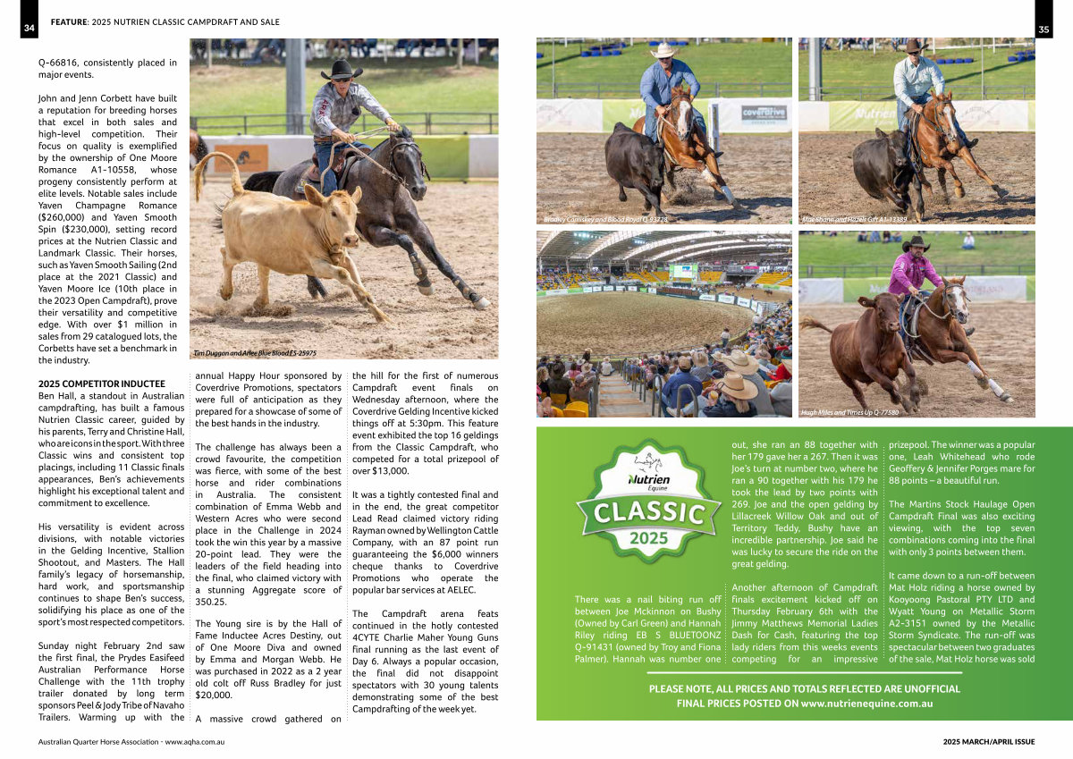 2025 COMPETITOR INDUCTEE Ben Hall , a standout in Australian campdrafting , has built a famous Nutrien Classic career , guided by his parents , Terry and Christine Hall , who are icons in the sport . With three Classic wins and consistent top placings , including 11 Classic finals appearances , Ben ’ s achievements highlight his exceptional talent and commitment to excellence .