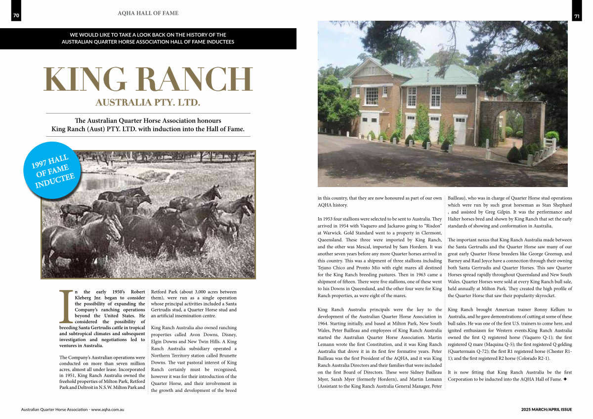 The Australian Quarter Horse Association honours King Ranch ( Aust ) PTY . LTD . with induction into the Hall of Fame .