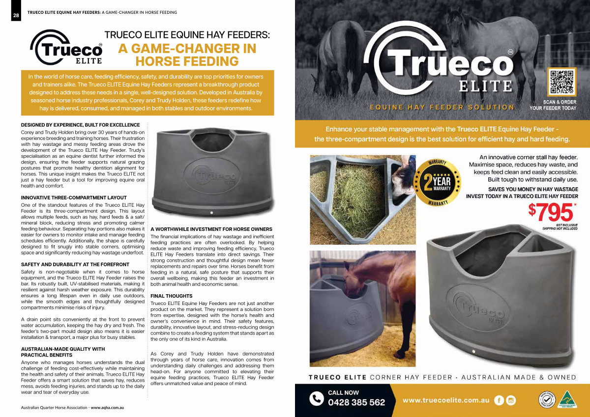As Corey and Trudy Holden have demonstrated through years of horse care, innovation comes from understanding daily challenges and addressing them head-on. For anyone committed to elevating their equine feeding practices, Trueco ELITE Hay Feeder offers unmatched value and peace of mind.