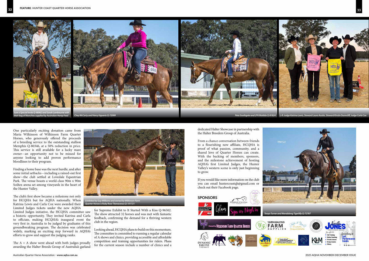 The club’ s first show became a milestone not only for HCQHA but for AQHA nationally. When Katrina Lewis and Carla Cox were awarded their Limited Judges tickets under the new AQHA Limited Judges initiative, the HCQHA committee saw a historic opportunity. They invited Katrina and Carla to officiate, making HCQHA’ s inaugural event the very first in Australia to be judged by graduates of this groundbreaking program. The decision was celebrated widely, marking an exciting step forward in AQHA’ s efforts to grow and support the judging ranks.