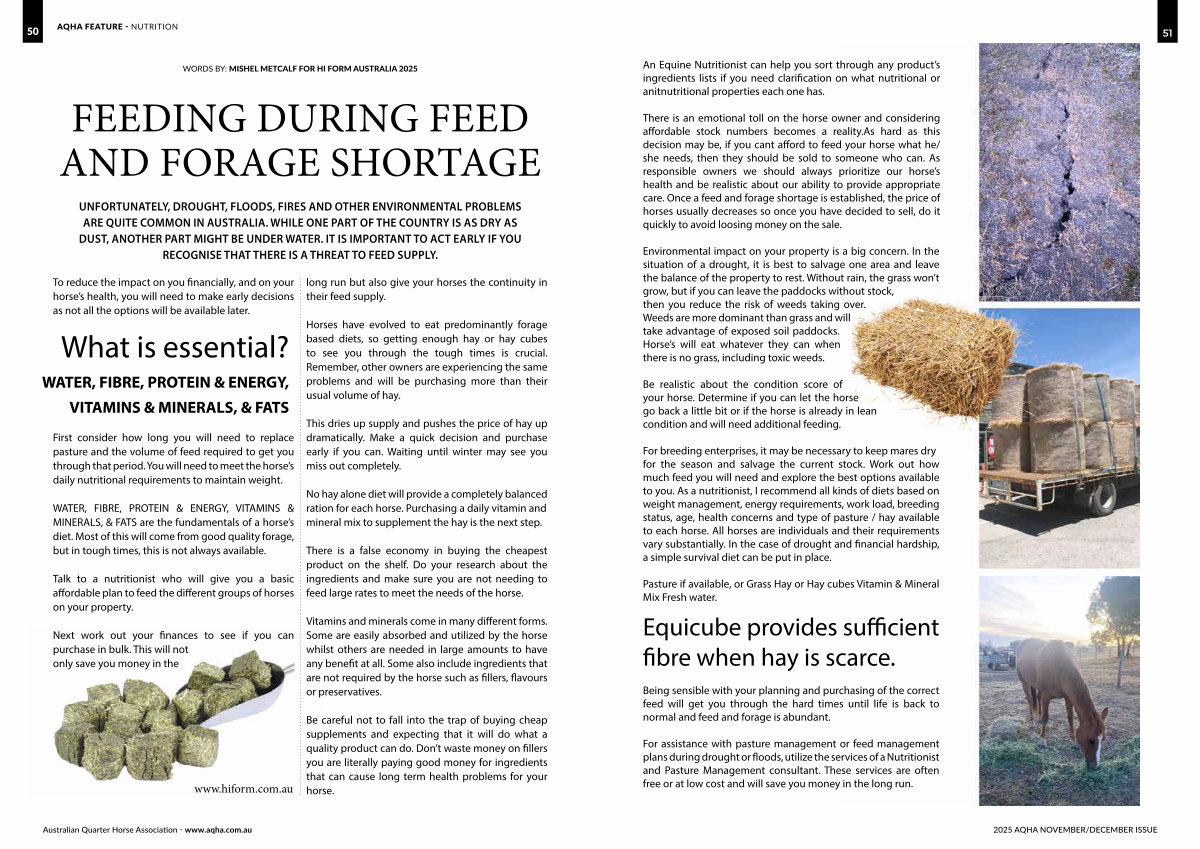 Next work out your finances to see if you can purchase in bulk. This will not only save you money in the www. hiform. com. au long run but also give your horses the continuity in their feed supply.