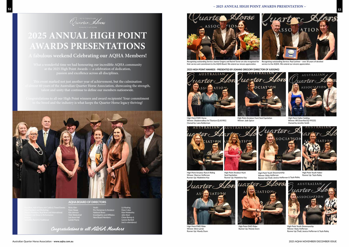 2025 HIGH POINT AWARDS- PRESENTED BY JOANNE GREGORY( DIRECTOR OF JUDGING)