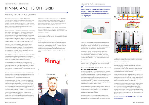 Rinnai ’ s innovative new product portfolio of H3 products – hydrogen biofuels , heat pump and hybrid technologies will deliver heating and hot water solutions for off-grid commercial and domestic properties . Operations Director Chris Goggin explains how the range is designed specifically to lower carbon , encourage greater cost efficiencies whilst producing enhanced product performance and system durability .