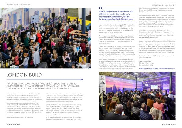 London Build works with an incredible team of Women in Construction and Diversity in Construction Ambassadors , who are furthering equality in the built environment . This year ’ s Ambassador Programme also includes the launch of the London Build Mental Health Ambassadors .