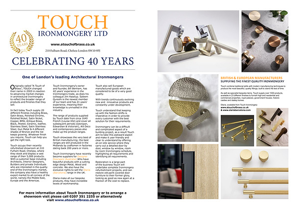 Olaria , available from Touch Ironmongery www . atouchofbrass . co . uk & www . olariabarcelona . com