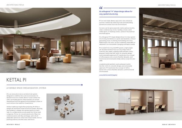 a sophisticated aesthetic and a pleasant textilelike feel. With its versatile design and sustainable approach, PI transforms the concept of office spaces into a more flexible, dynamic, and functional environment.