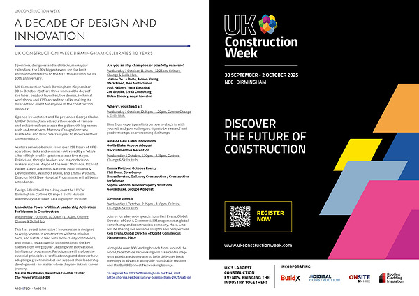 Design & Build will be taking over the UKCW Birmingham Culture Change & Skills Hub on Wednesday 1 October. Talk highlights include: