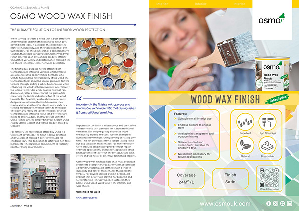 Osmo Wood Wax Finish is more than just a coating; it represents a complete wood care system. It combines a beautiful, customizable aesthetic with a level of durability and ease of maintenance that is hard to surpass. For anyone seeking a single, dependable product that delivers all-around, hardwearing, and safe protection for every wooden surface in their home, Osmo Wood Wax Finish is the ultimate and wise choice.