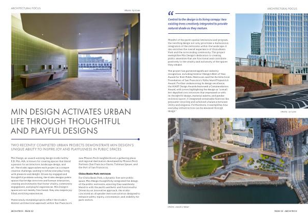 Min Design, an award-winning design studio led by E. B. Min, AIA, is known for creating spaces that blend a passion for architecture, landscape design, and art. The studio approaches each project as a unique creative challenge, seeking to infuse everyday living with pleasure and delight. Driven by engaged and thoughtful problem-solving, the studio designs public spaces that bridge structure and human interaction, creating environments that foster vitality, community engagement, and playful experiences. Min Design’ s spaces are not merely functional; they also inspire joyfilled, enriching experiences.