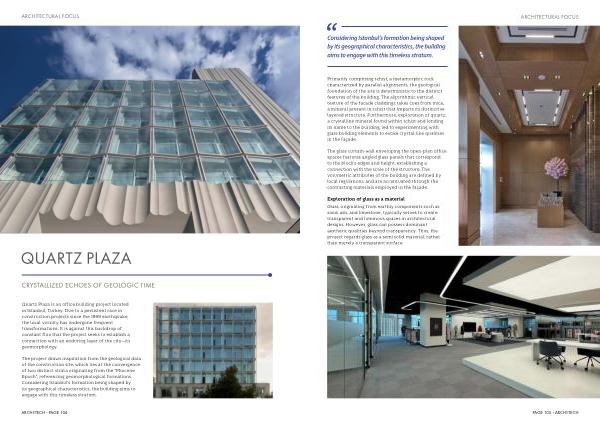 Quartz Plaza is an office building project located in Istanbul, Turkey. Due to a persistent race in construction projects since the 1999 earthquake, the local vicinity has undergone frequent transformations. It is against this backdrop of constant flux that the project seeks to establish a connection with an enduring layer of the city— its geomorphology.