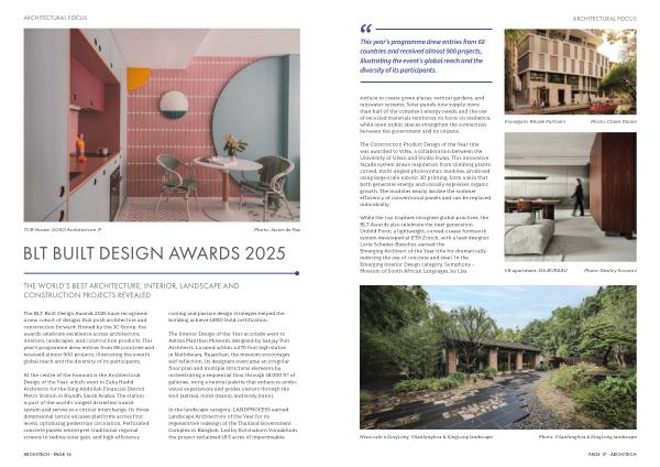 The BLT Built Design Awards 2025 have recognised a new cohort of designs that push architecture and construction forward. Hosted by the 3C Group, the awards celebrate excellence across architecture, interiors, landscapes, and construction products. This year’ s programme drew entries from 68 countries and received almost 900 projects, illustrating the event’ s global reach and the diversity of its participants.
