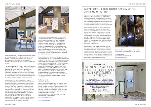 “ We recognized that the cosmetic brands and the shops in shops would each bring with them their distinct identities,” explains Diego Burdi, Creative Director, BURDIFILEK.“ From the vibrant yellow of Gucci to the striking red of Aesop, our matte color palette was meticulously crafted to allow these individual brands to stand out, while simultaneously anchoring the space in Hyundai’ s own refined and enduring presence.”