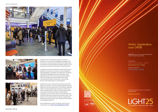 In addition to these new features, LiGHT 25 will bring together thousands of architects, interior designers, lighting designers, engineers, and specifiers, alongside hundreds of leading architectural and decorative lighting brands. Visitors can also take advantage of networking opportunities throughout the event, including a late-night drinks party, a networking brunch, and a dedicated co-working space.