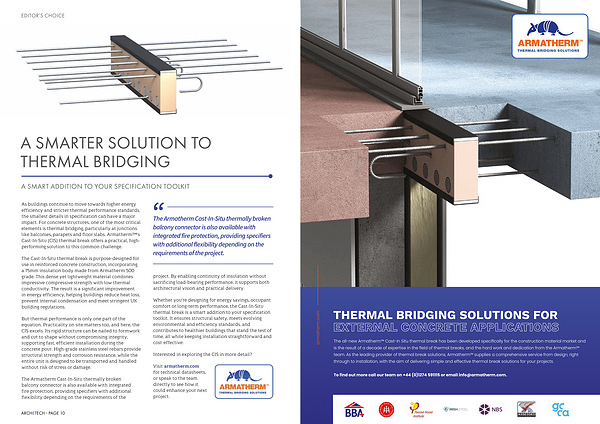 The all-new Armathermâ„¢ Cast-In Situ thermal break has been developed specifically for the construction material market and is the result of a decade of expertise in the field of thermal breaks, and the hard work and dedication from the Armathermâ„¢ team. As the leading provider of thermal break solutions, Armathermâ„¢ supplies a comprehensive service from design, right through to installation, with the aim of delivering simple and effective thermal break solutions for your projects.