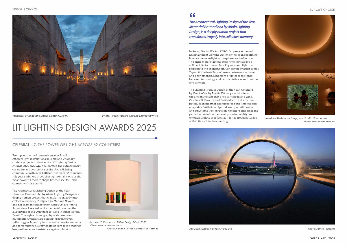 The Architectural Lighting Design of the Year, Memorial Brumadinho by Atiaîa Lighting Design, is a deeply human project that transforms tragedy into collective memory.