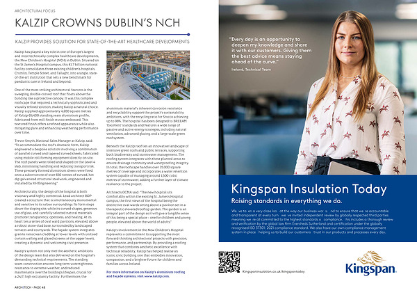 Kalzip’ s involvement in the New Children’ s Hospital represents a commitment to supporting the most forward-thinking architectural projects with precision, performance, and partnership. By providing a roofing system that combines aesthetic excellence with technical reliability, Kalzip has helped realise an iconic civic building, one that embodies innovation, compassion, and a brighter future for children and families across Ireland.