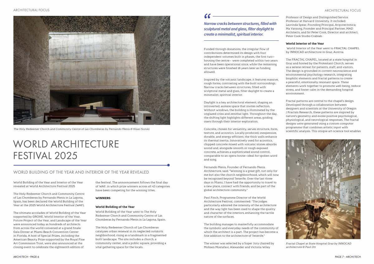 The Holy Redeemer Church and Community Centre of Las Chumberas by Fernando Menis in La Laguna, Spain, has been declared the World Building of the Year at the 2025 World Architecture Festival( WAF).