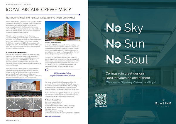 A tribute to the town’ s industry Architects Corstorphine & Wright proposed a facade design for one side of the MSCP to pay homage to Crewe’ s industrial heritage, and RMIG Solutions was chosen for the task. With RMIG ImagePerf, it was possible to showcase the industrial legacy that has delivered innovation and engineering excellence to the world for decades.