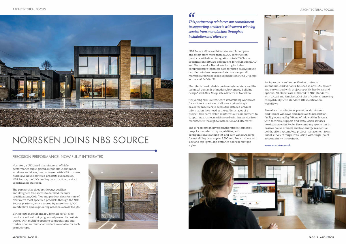 NBS Source allows architects to search, compare and select from more than 26,000 construction products, with direct integration into NBS Chorus specification software and plugins for Revit, ArchiCAD and Vectorworks. Norrsken’ s listing includes comprehensive technical data for three passive house certified window ranges and six door ranges, all manufactured to bespoke specifications with U-values as low as 0.64 W / m ² K.