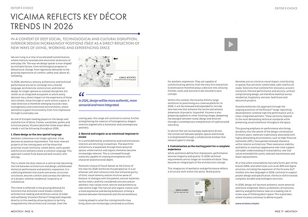 At a time when sustainability naturally forms part of the brand’ s DNA, and when tools such as AI, BIM and digital solutions, including the expansion of the Vicaima 24 / 7 chatbot into new languages in 2026, continue to support project design and specification, the focus shifts towards complete, durable and intelligent solutions.