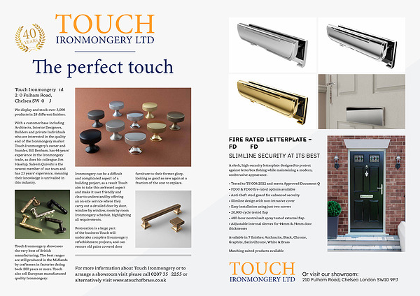 For more information about Touch Ironmongery or to arrange a showroom visit please call 0207 351 2255 or alternatively visit www. atouchofbrass. co. uk