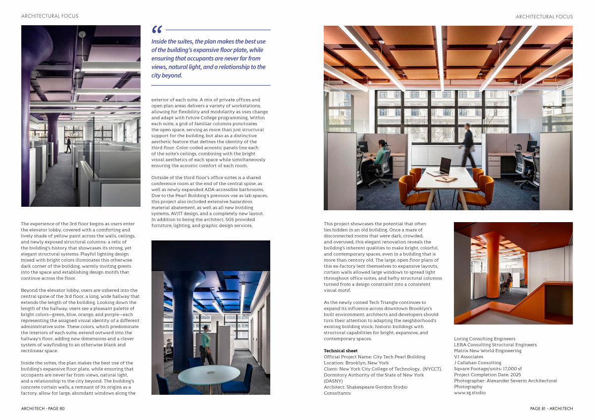 Outside of the third floor’ s office suites is a shared conference room at the end of the central spine, as well as newly expanded ADA-accessible bathrooms. Due to the Pearl Building’ s previous use as lab spaces, this project also included extensive hazardous material abatement, as well as all new building systems, AV / IT design, and a completely new layout. In addition to being the architect, SGS provided furniture, lighting, and graphic design services.
