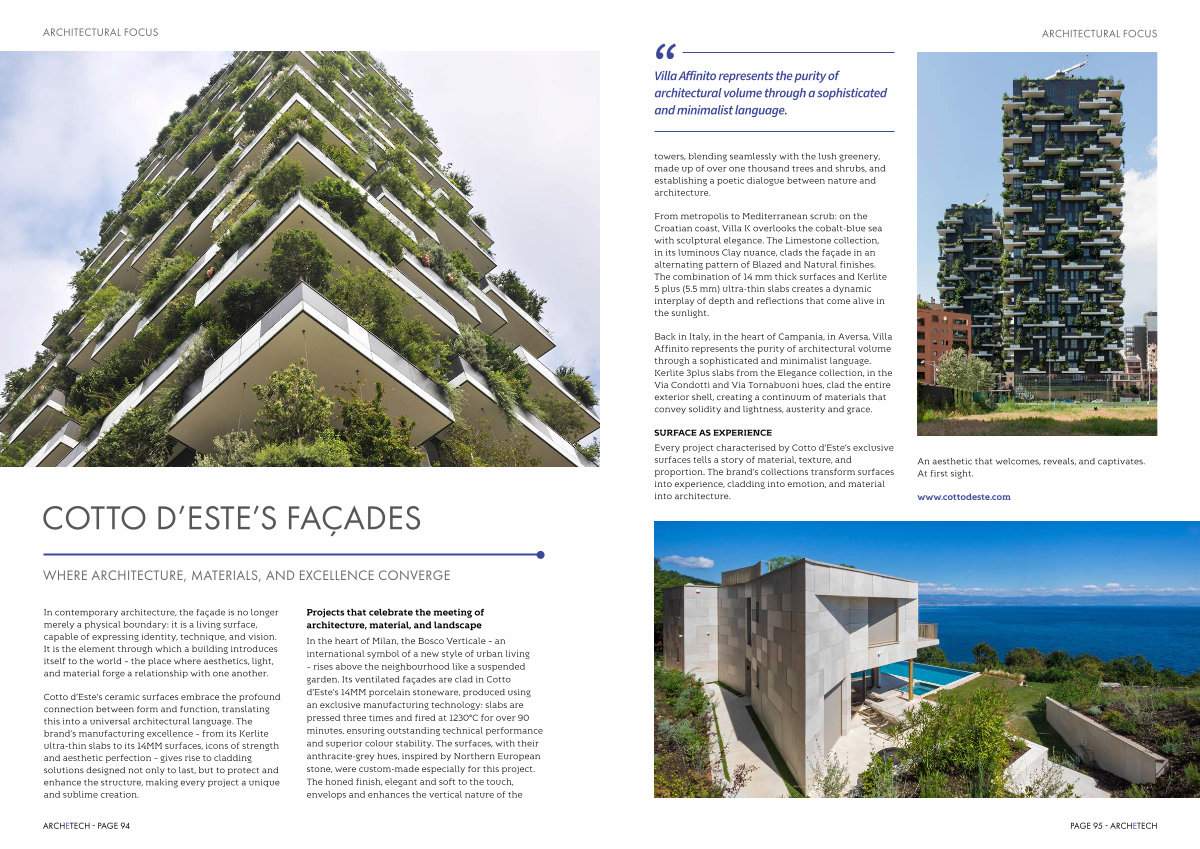 Cotto d’ Este’ s ceramic surfaces embrace the profound connection between form and function, translating this into a universal architectural language. The brand’ s manufacturing excellence – from its Kerlite ultra-thin slabs to its 14MM surfaces, icons of strength and aesthetic perfection – gives rise to cladding solutions designed not only to last, but to protect and enhance the structure, making every project a unique and sublime creation.