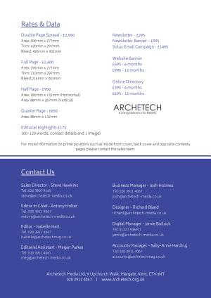Editor in Chief - Antony Holter Tel : 020 3911 4067 antony @ archetech-media . co . uk