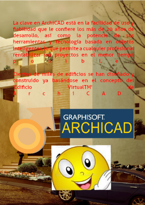 La clave en ArchiCAD está en la facilidad de uso y fiabilidad que le confiere los más de 20 años de desarrollo, así como la potencia de sus herramientas y tecnología basada en objetos inteligentes, lo que permite a cualquier profesional rentabilizar sus proyectos en el menor tiempo posible.