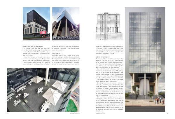 SITE AND PLANNING The site orientation presented a challenge in the sense that it is facing North-East. It resulted in a narrow elevation facing Rivonia Road to the North- West. This orientation influences the heat gain in the building which was addressed through the design and selection of glazing and blinds.
