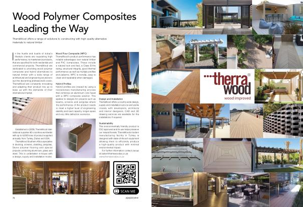 TherraWood Southern Africa specialise in decking , screens , cladding , pergolas , Stone polymer flooring and special projects combining aluminium , glass and steel . This is undertaken in-house with a design , supply and installation model .