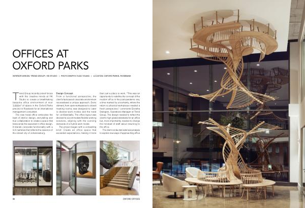 Trend Group recently joined forces with the creative minds at HK Studio to create a breathtaking bespoke office environment of over 3,000m 2 of space in the Oxford Parks precinct in Rosebank for an international management consultant .