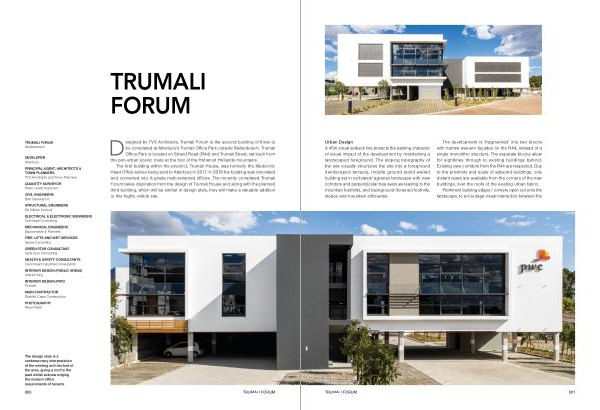 The first building within the precinct , Trumali House , was formerly the Mediclinic Head Office before being sold to Atterbury in 2017 . In 2018 the building was renovated and converted into A-grade multi-tenanted offices . The recently completed Trumali Forum takes inspiration from the design of Trumali House and along with the planned third building , which will be similar in design style , they will make a valuable addition to this highly visible site .