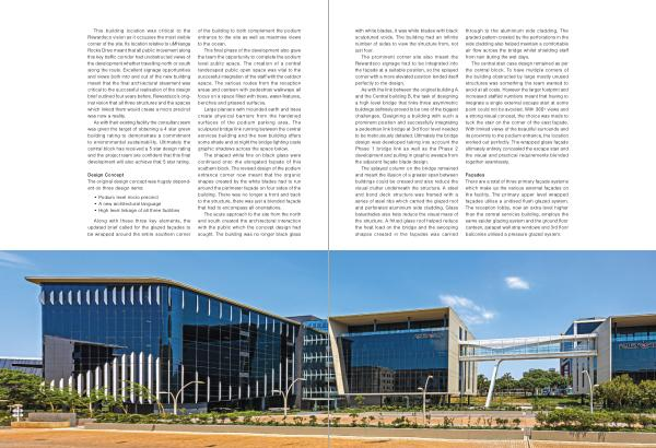 This building location was critical to the Rewardsco vision as it occupies the most visible corner of the site . Its location relative to uMhlanga Rocks Drive meant that all public movement along this key traffic corridor had unobstructed views of the development whether travelling north or south along the route . Excellent signage opportunities and views both into and out of the new building meant that the final architectural statement was critical to the successful realisation of the design brief outlined four years before . Rewardsco ’ s original vision that all three structures and the spaces which linked them would create a micro precinct was now a reality .