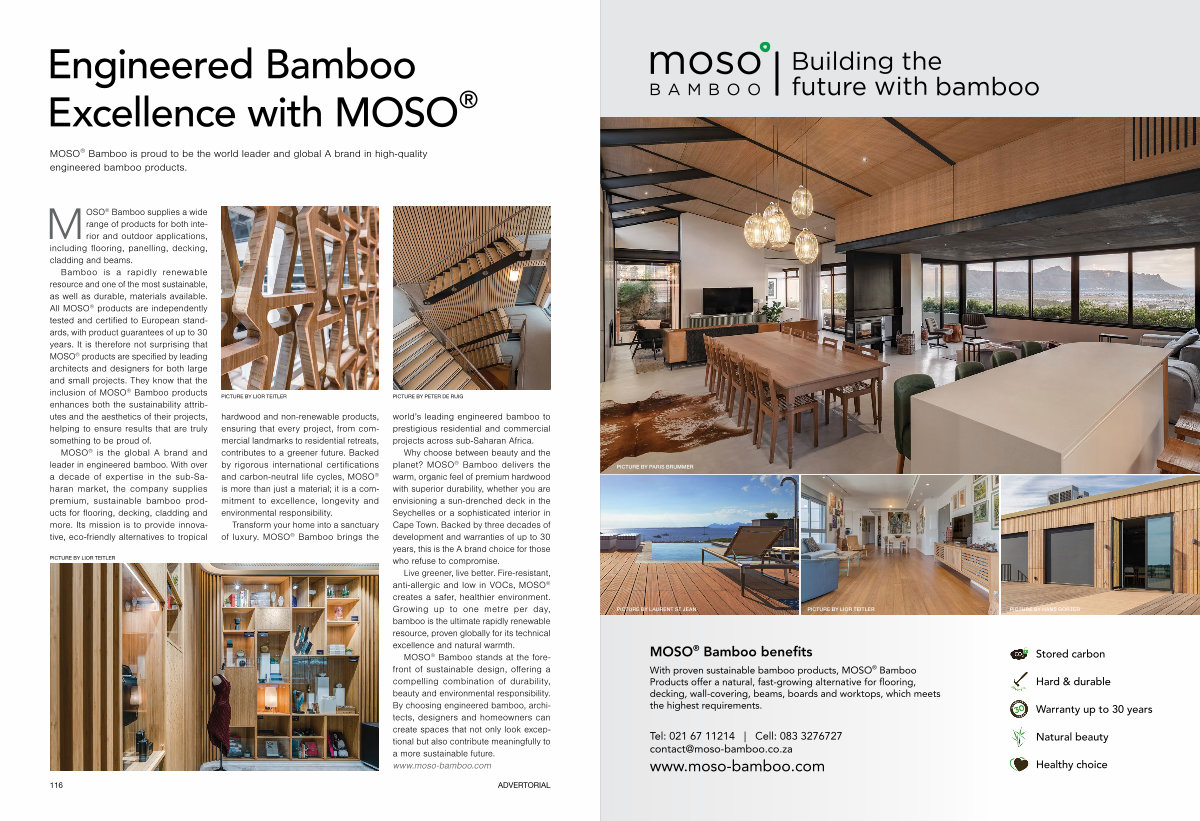 MOSO ® is the global A brand and leader in engineered bamboo. With over a decade of expertise in the sub-Saharan market, the company supplies premium, sustainable bamboo products for flooring, decking, cladding and more. Its mission is to provide innovative, eco-friendly alternatives to tropical