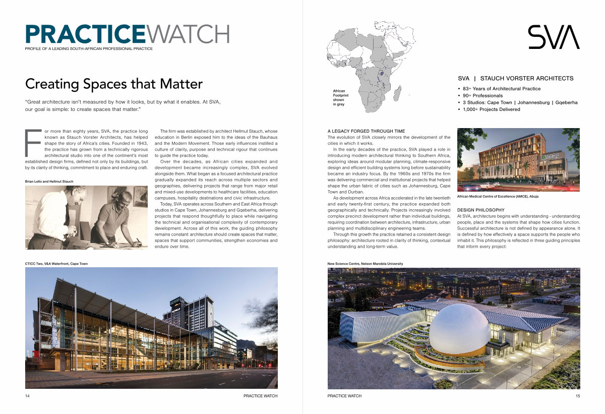 In the early decades of the practice, SVA played a role in introducing modern architectural thinking to Southern Africa, exploring ideas around modular planning, climate-responsive design and efficient building systems long before sustainability became an industry focus. By the 1960s and 1970s the firm was delivering commercial and institutional projects that helped shape the urban fabric of cities such as Johannesburg, Cape Town and Durban.