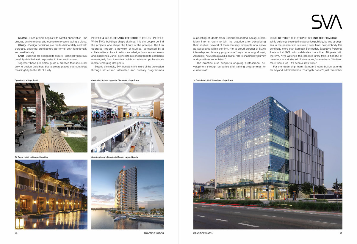 PEOPLE & CULTURE: ARCHITECTURE THROUGH PEOPLE While SVA’ s buildings shape skylines, it is the people behind the projects who shape the future of the practice. The firm operates through a network of studios, connected by a collaborative culture in which knowledge flows across teams and disciplines. Junior architects are encouraged to contribute meaningfully from the outset, while experienced professionals mentor emerging designers.