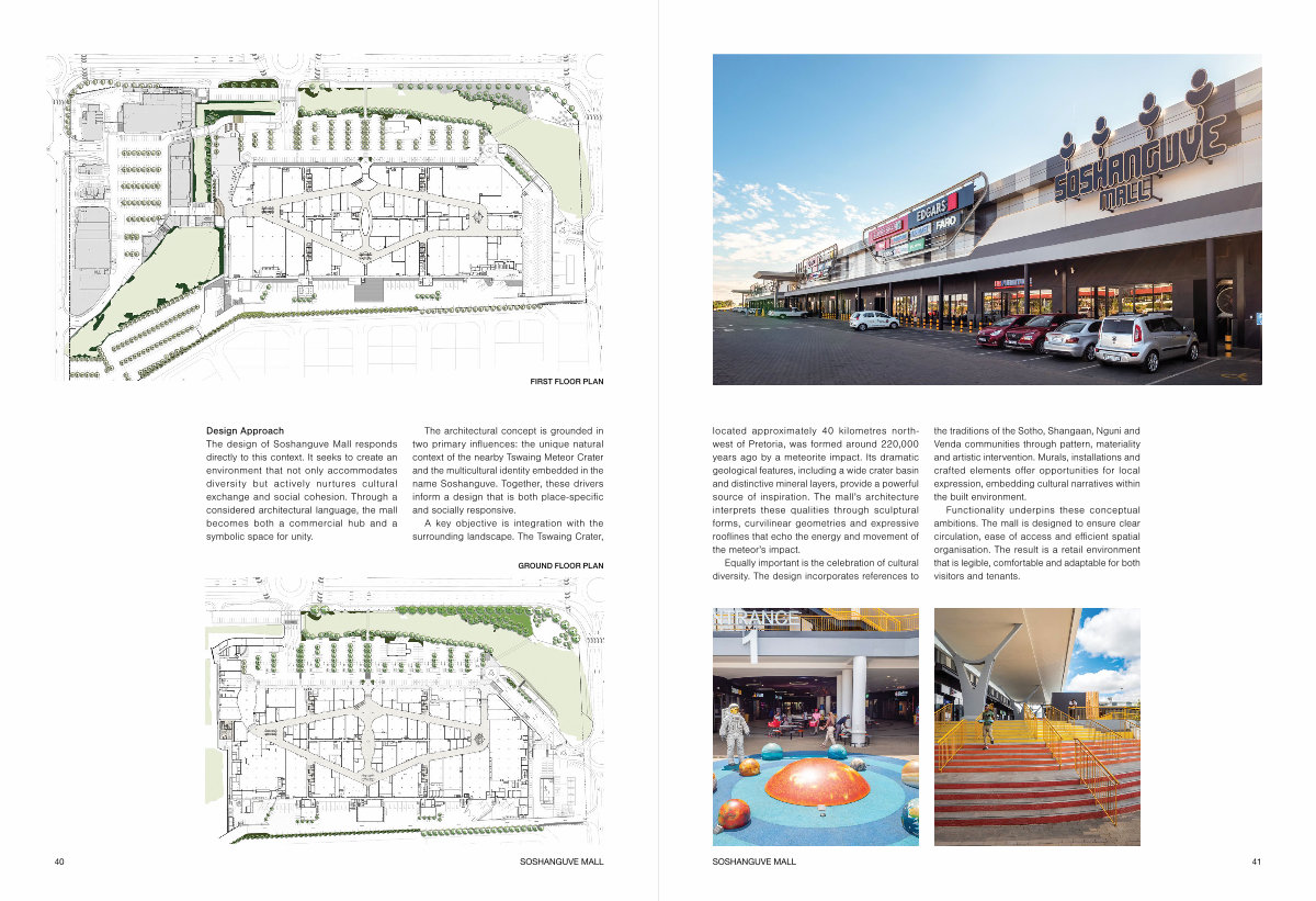Design Approach The design of Soshanguve Mall responds directly to this context. It seeks to create an environment that not only accommodates diversity but actively nurtures cultural exchange and social cohesion. Through a considered architectural language, the mall becomes both a commercial hub and a symbolic space for unity.