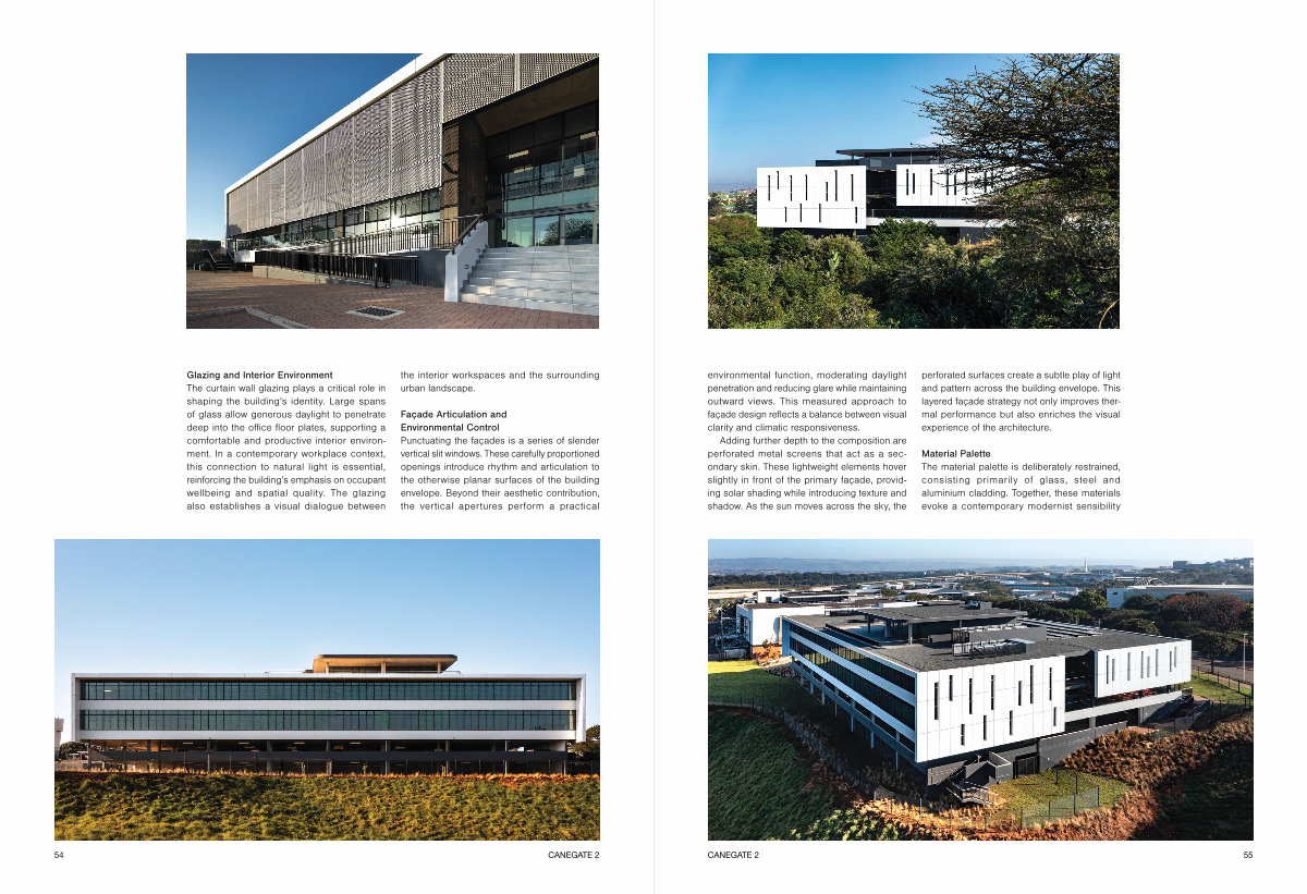 Material Palette The material palette is deliberately restrained, consisting primarily of glass, steel and aluminium cladding. Together, these materials evoke a contemporary modernist sensibility