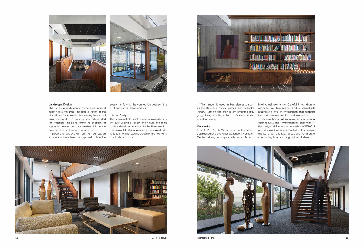 Conclusion The STIAS North Wing extends the vision established by the original Wallenberg Research Centre, strengthening its role as a place of intellectual exchange. Careful integration of architecture, landscape, and sustainability strategies create an environment that supports focused research and informal interaction.